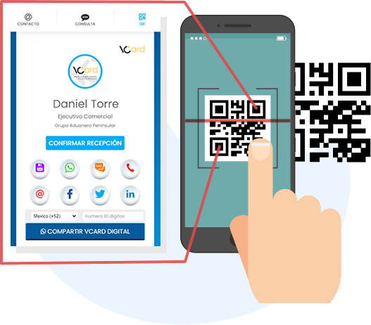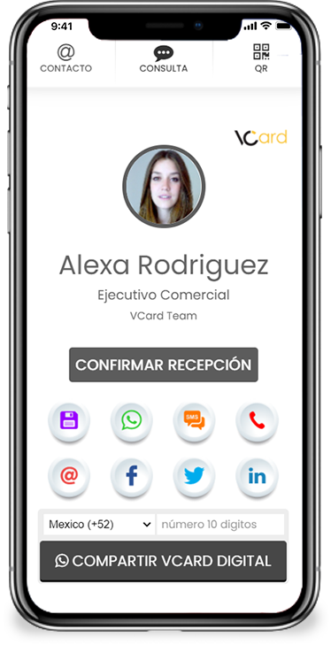 Es la tarjeta de presentación más avanzada que existe, se comparte electrónicamente y en cada entrega los datos se almacenan en la libreta de contactos del smartphone o programa de correo electrónico que lo recibe, asegurando con esto que toda la información esté disponible para tus clientes en la palma de su mano.